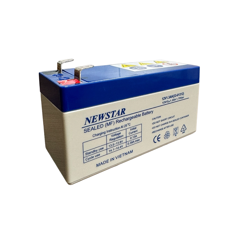 The Newstar 33-01312 (12V 1.3Ah) is a compact sealed lead acid (VRLA) battery designed for UPS backup and standby power applications. Manufactured using AGM (Absorbent Glass Mat) technology, it offers reliable performance, low self-discharge, and maintenance-free operation. Its small form factor makes it ideal for mini-UPS systems, alarm panels, emergency lighting, and security equipment where dependable backup power is required in a limited space.
