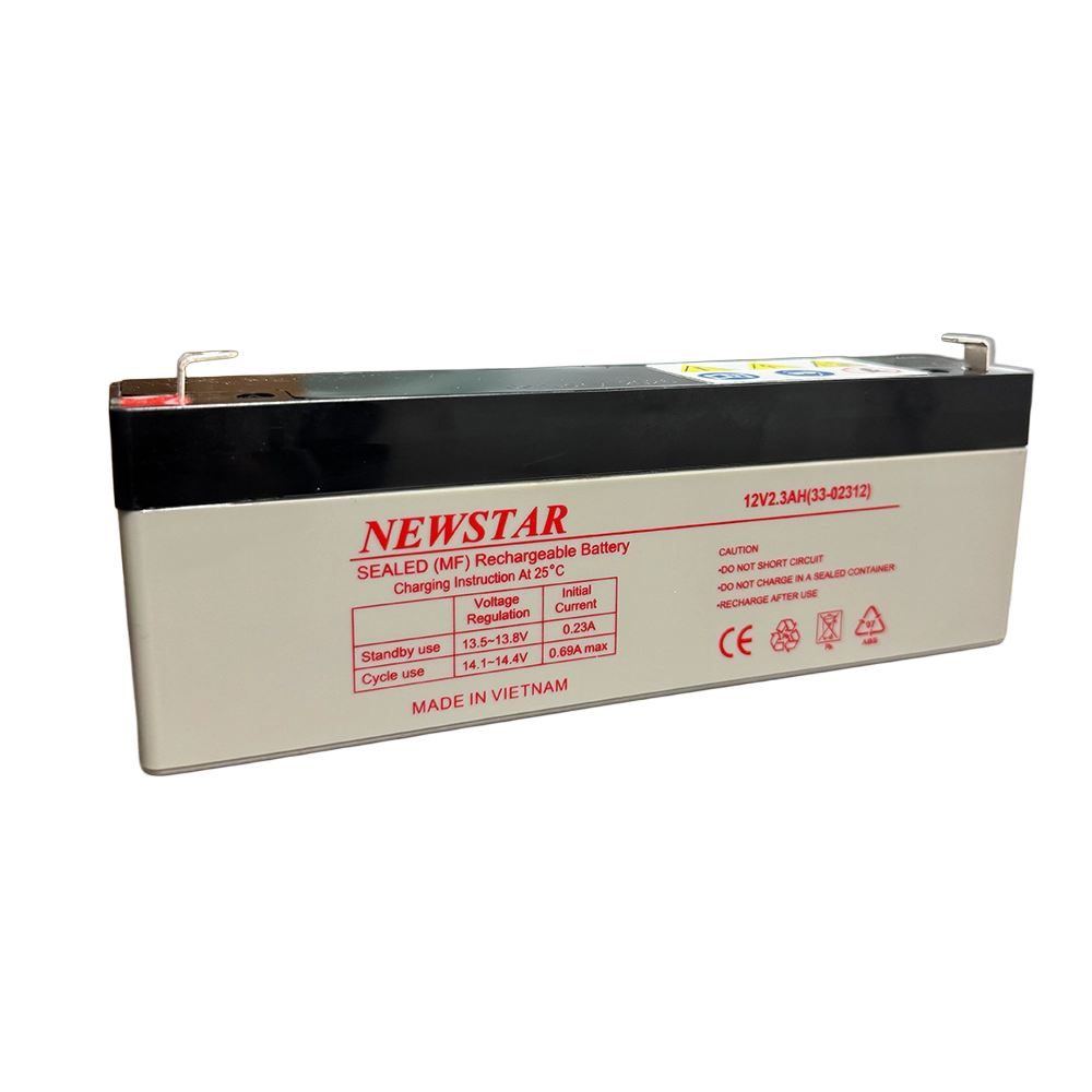 The Newstar 33-02312 (12V 2.3Ah) is a compact sealed lead acid (VRLA) battery designed specifically for UPS backup and standby power applications. Manufactured using AGM (Absorbent Glass Mat) technology, it delivers stable performance, low self-discharge, and maintenance-free operation. Its slim profile and reliable float characteristics make it ideal for mini-UPS units, alarm panels, emergency lighting, and control systems where consistent backup power is required in limited space environments.