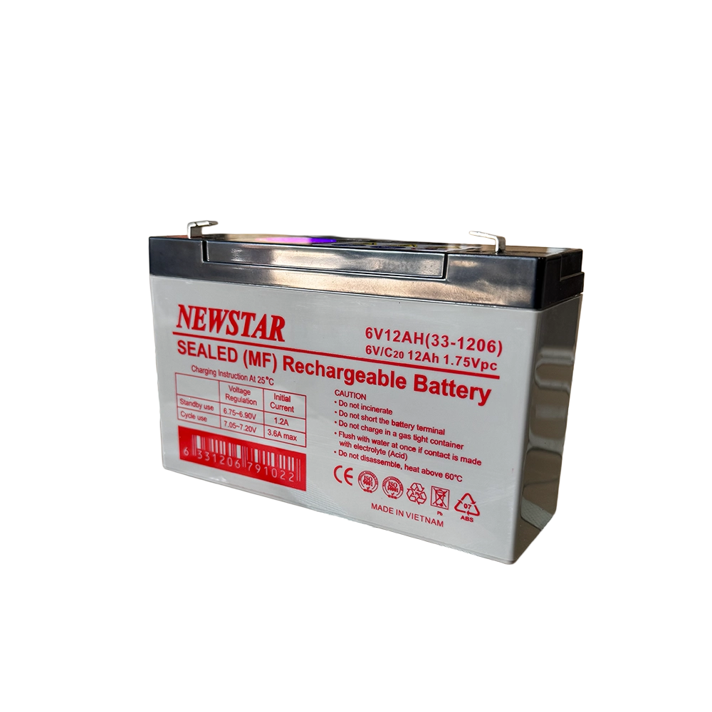 The Newstar NP6-12Ah (6V 12Ah) is a reliable valve regulated lead acid (VRLA) battery designed for UPS backup and standby power applications. Built with AGM (Absorbent Glass Mat) technology, this battery offers maintenance-free operation, stable discharge performance, and dependable standby power for security systems, emergency lighting, and low-voltage UPS systems. With a 5-year float design life, it is ideal for applications requiring compact yet reliable backup power .