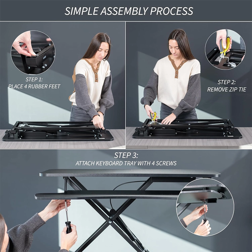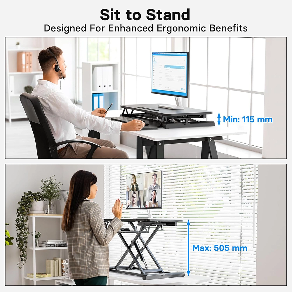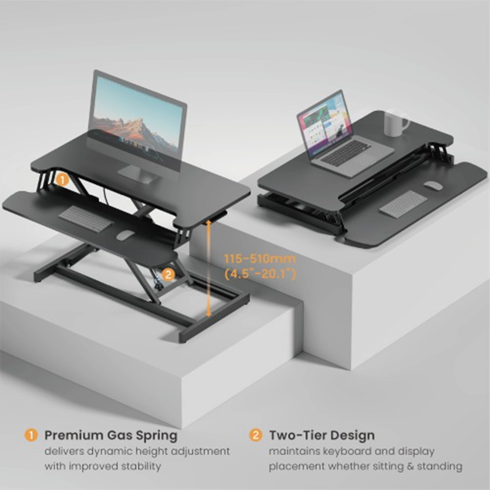 Transform your existing desk into a flexible, ergonomic workstation with the NEWSTAR DWS37-01 Sit-Stand Desk Converter. This converter features a large 800 × 400 mm tabletop (≈ 31.5″×15.7″) with a 16 mm thick surface that supports up to 15 kg (≈ 33 lbs). Raise or lower effortlessly between 115 mm and 510 mm (≈ 4.5″–20.1″) using its gas spring mechanism.