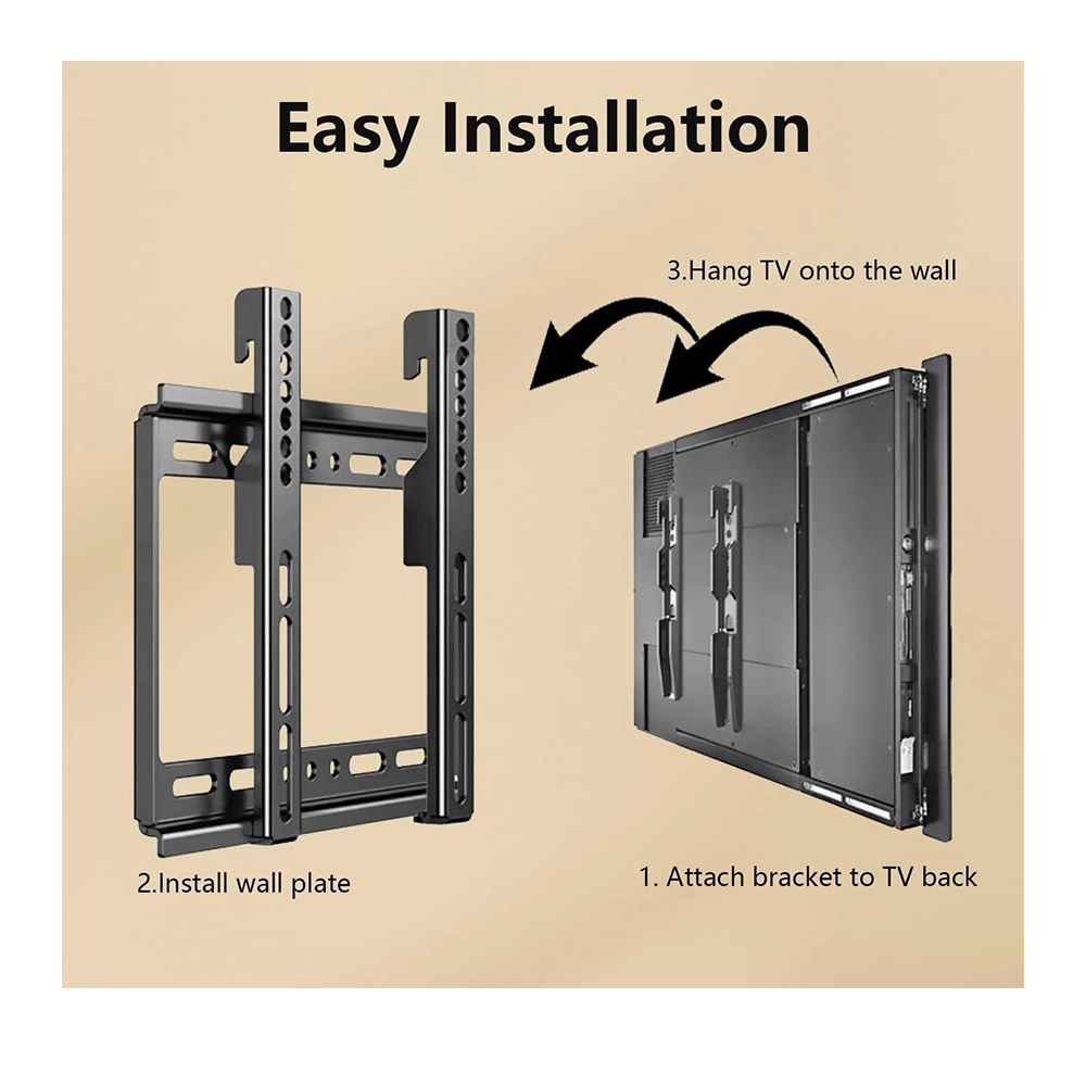 The NEWSTAR KL32-22F Fixed TV Wall Mount Bracket offers a strong, reliable, and stylish solution for mounting your TV. Designed to fit most 14″-43″ LED, LCD, and plasma flat-screen TVs, it supports VESA patterns up to 200x200mm and holds weights of up to 55 lbs (25kg). The ultra-slim profile keeps your TV only 0.9″ (2.3 cm) away from the wall, saving space and providing a sleek, modern look. Perfect for bedrooms, living rooms, kitchens, or offices. The heavy-duty steel frame and locking screws ensure your TV stays safe and secure. With all hardware included, you can install it in just 15 minutes. ⚠️ Not suitable for drywall mounting alone.