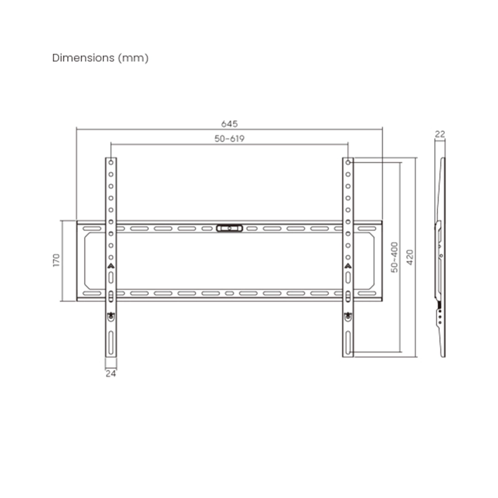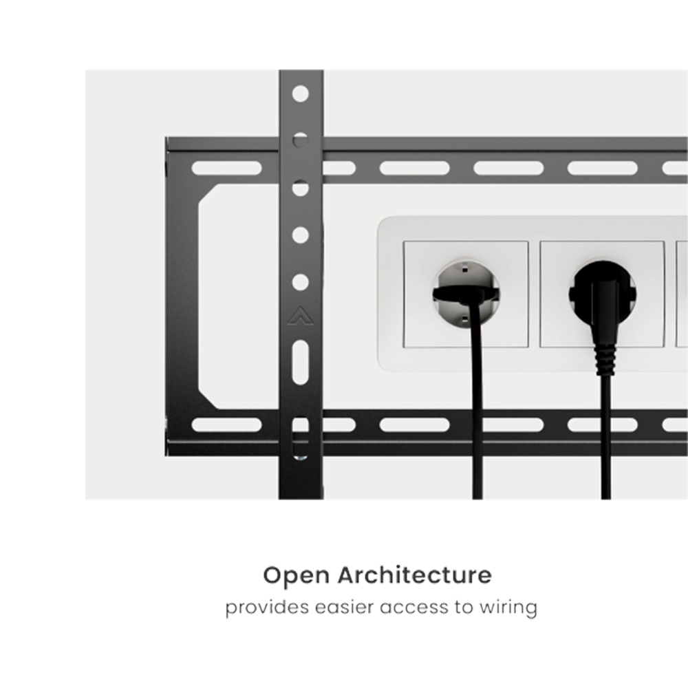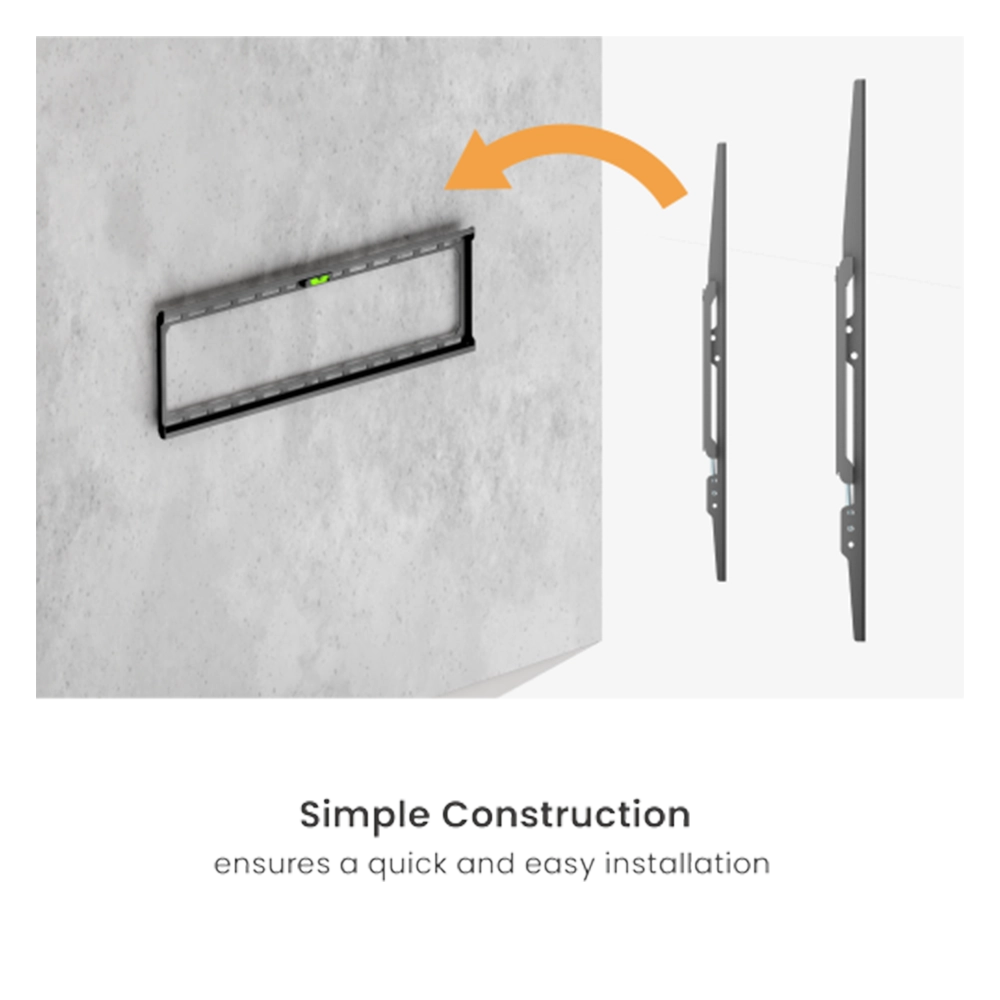 The Newstar KL37-46F fixed slim TV wall mount is engineered for large screens from 37 to 86 inches, including both flat and curved TVs, supporting up to 45 kg (99 lbs). Its ultra-slim 22 mm profile keeps your screen close to the wall for a clean look. This mount is fixed (non-tilting, non-swivelling), delivering maximum stability. It supports very wide VESA patterns up to 619×400 mm, accommodating many models. Designed for solid wall installation using double stud configurations (406 mm, 450 mm, or 600 mm spacing). It features a detachable panel for easier mounting and a built-in bubble level for accurate alignment.