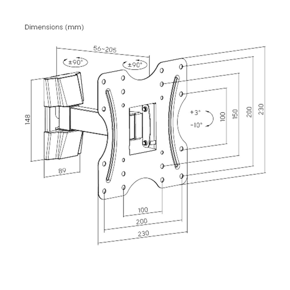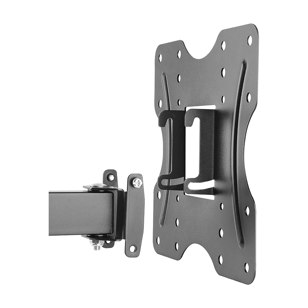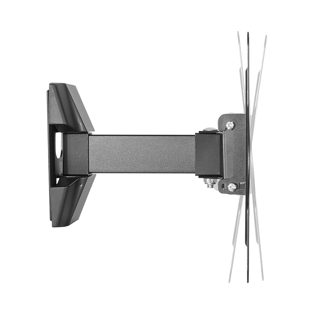 The Newstar KLA27-221 Full Motion TV Wall Mount is designed for LED, LCD, and flat panel TVs sized 23–42 inches. Built from strength-tested steel, it supports up to 30kg (66lbs) while providing flexibility for optimal viewing. The mount allows tilt (+3°/–10°) and swivel (±90°), ensuring you can find the best angle from any seat. With an extendable arm that reaches 190mm from the wall, it saves space when retracted. The open architecture design improves ventilation and provides easy cable access. Compatible with VESA 100×100, 200×100, and 200x200mm patterns. Not suitable for curved TVs.