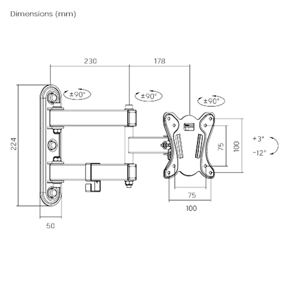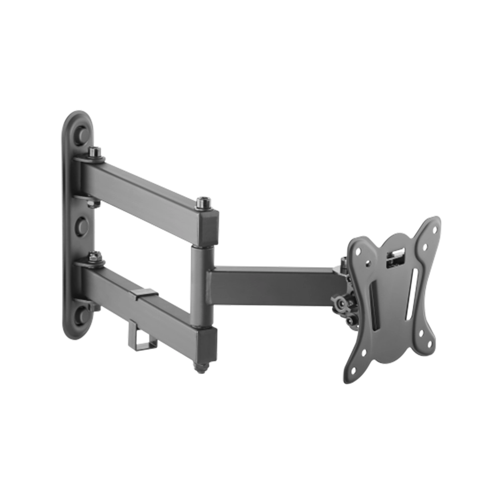 The NEWSTAR 91-KMA20113 compact full motion wall mount is tailored for 13″ to 27″ LED and LCD flat panel TVs (not suitable for curved TVs). It supports up to 25 kg (55 lbs) and is built of powder-coated steel for durability. With swivel up to ±90° and tilt from +3° to –12°, it ensures flexible viewing from various seating positions. Its extendable arm (65 mm to 408 mm) lets you pull the TV out or tuck it closer to the wall. The mount supports VESA standards 75×75 and 100×100 mm, and features a detachable panel, key-hole mounting design, and cable clips for a cleaner setup.