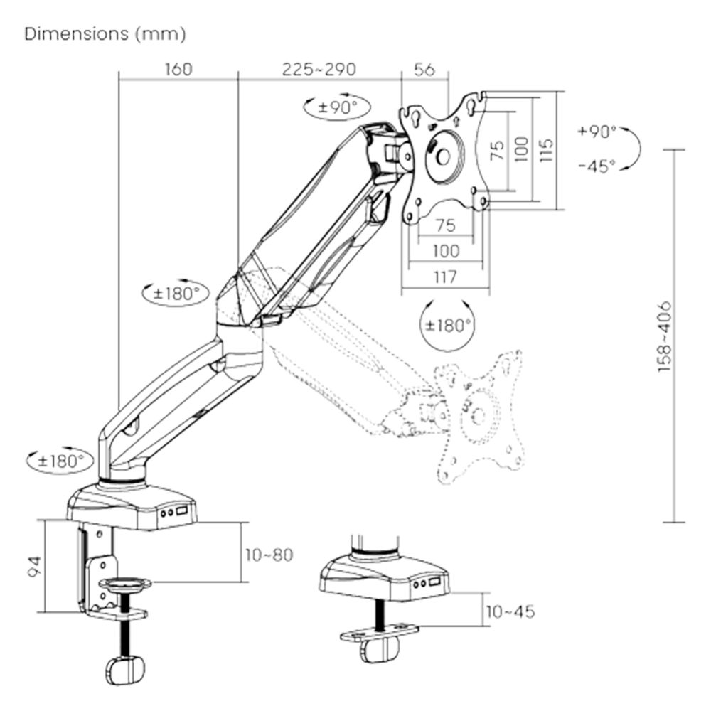 The arm extends up to 450 mm for maximum reach, yet retracts neatly to save space when not in use. Two mounting options, clamp and grommet, ensure compatibility with most desks, and the integrated cable management keeps your setup clean. Matte black finish with robust steel and aluminium construction means it’s built to be both sturdy and stylish. Elevate your comfort and productivity today with this ergonomic, value-oriented mount.