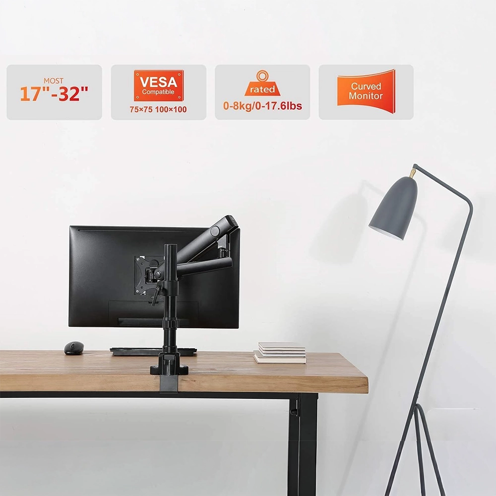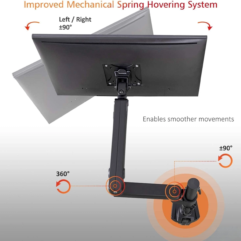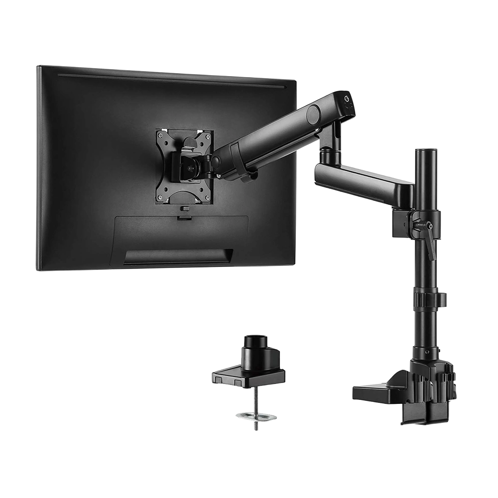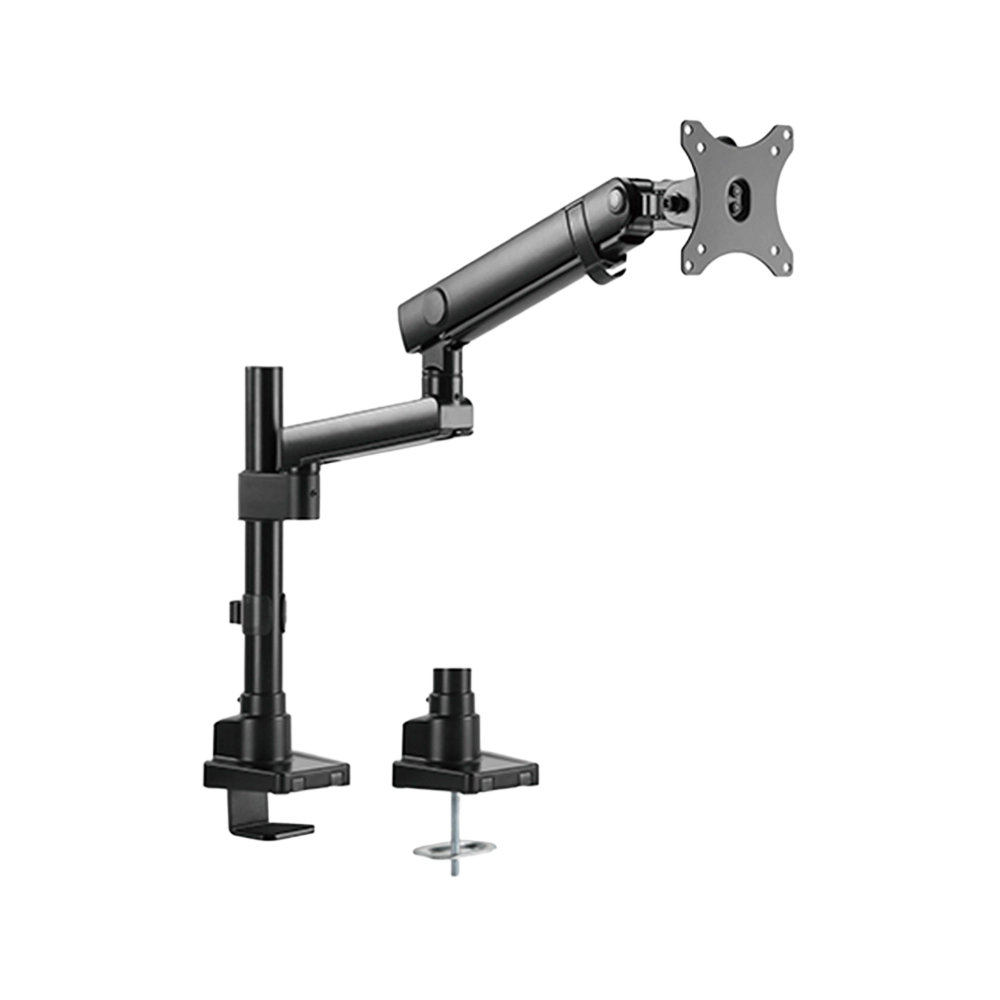 The Newstar LDT20-C012P Spring-Assisted Single Monitor Arm is a premium desk mount designed for 17″–32″ monitors, including flat and curved screens, with a maximum load capacity of 8 kg (17.6 lbs). Its spring-assisted mechanism ensures smooth vertical movement and easy height adjustment while maintaining screen stability. Offering full motion flexibility, it supports tilt (+90°/–90°), swivel (+90°/–90°), and rotation, allowing quick transitions between portrait and landscape modes. Built from high-quality aluminium and steel with a powder-coated matte finish, it combines strength with modern aesthetics. Installation is simple, with both clamp and grommet options included, making it suitable for a variety of desk types. Integrated cable management keeps wires neat and organised, creating a cleaner, more ergonomic workspace.