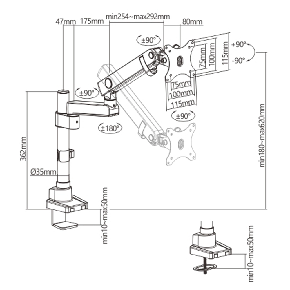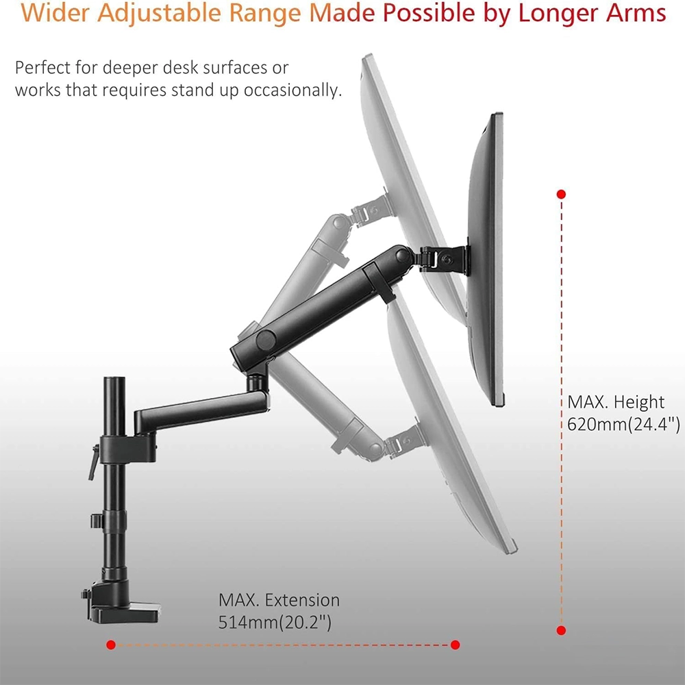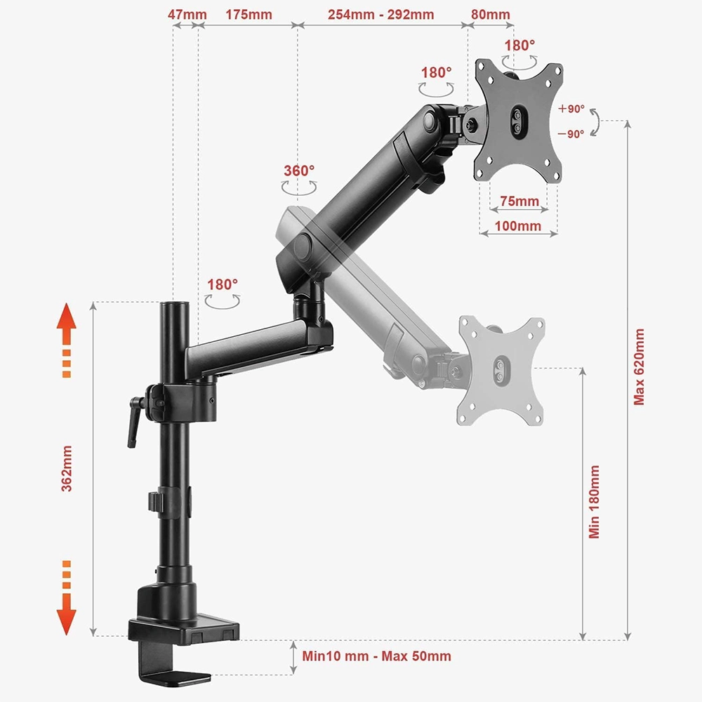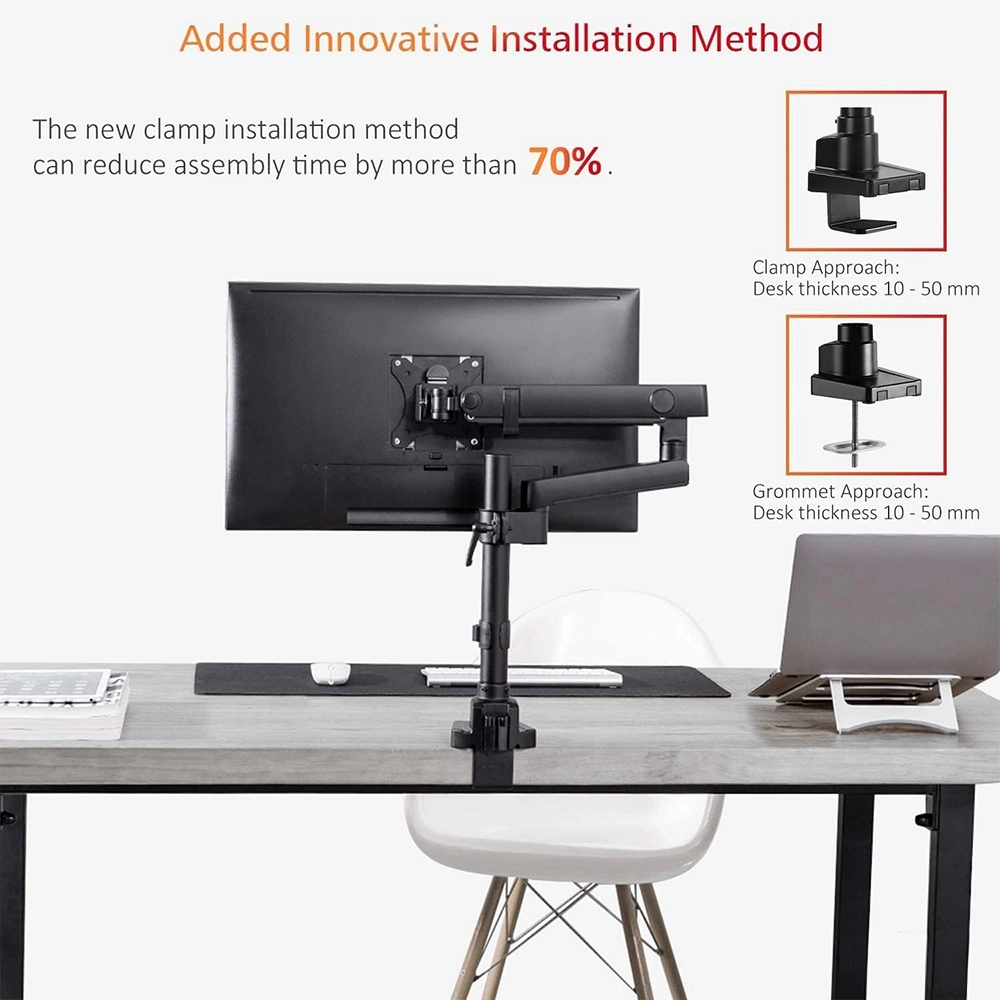 The Newstar LDT20-C012P Spring-Assisted Single Monitor Arm is a premium desk mount designed for 17″–32″ monitors, including flat and curved screens, with a maximum load capacity of 8 kg (17.6 lbs). Its spring-assisted mechanism ensures smooth vertical movement and easy height adjustment while maintaining screen stability. Offering full motion flexibility, it supports tilt (+90°/–90°), swivel (+90°/–90°), and rotation, allowing quick transitions between portrait and landscape modes. Built from high-quality aluminium and steel with a powder-coated matte finish, it combines strength with modern aesthetics. Installation is simple, with both clamp and grommet options included, making it suitable for a variety of desk types. Integrated cable management keeps wires neat and organised, creating a cleaner, more ergonomic workspace.