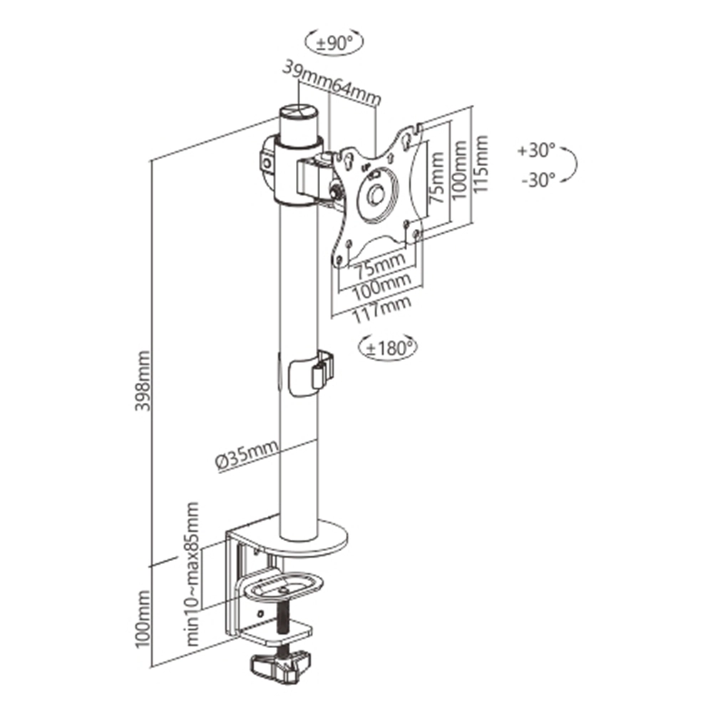 The Newstar LDT30-C01 Single Monitor Arm is a premium articulating desk mount designed to improve workspace ergonomics and free up desk space. Suitable for monitors between 17″ and 32″ and supporting up to 8 kg (17.6 lbs), it provides full motion flexibility with 360° rotation, ±90° swivel, and +30° to –30° tilt for comfortable viewing at any angle. Constructed from strong aluminium with a sleek powder-coated finish, it combines durability with modern design. The integrated cable management system keeps your desk tidy, while its versatile mounting options (clamp or grommet) make installation simple. Compatible with VESA 75×75 and 100×100 mm, this mount is ideal for both home and office setups.