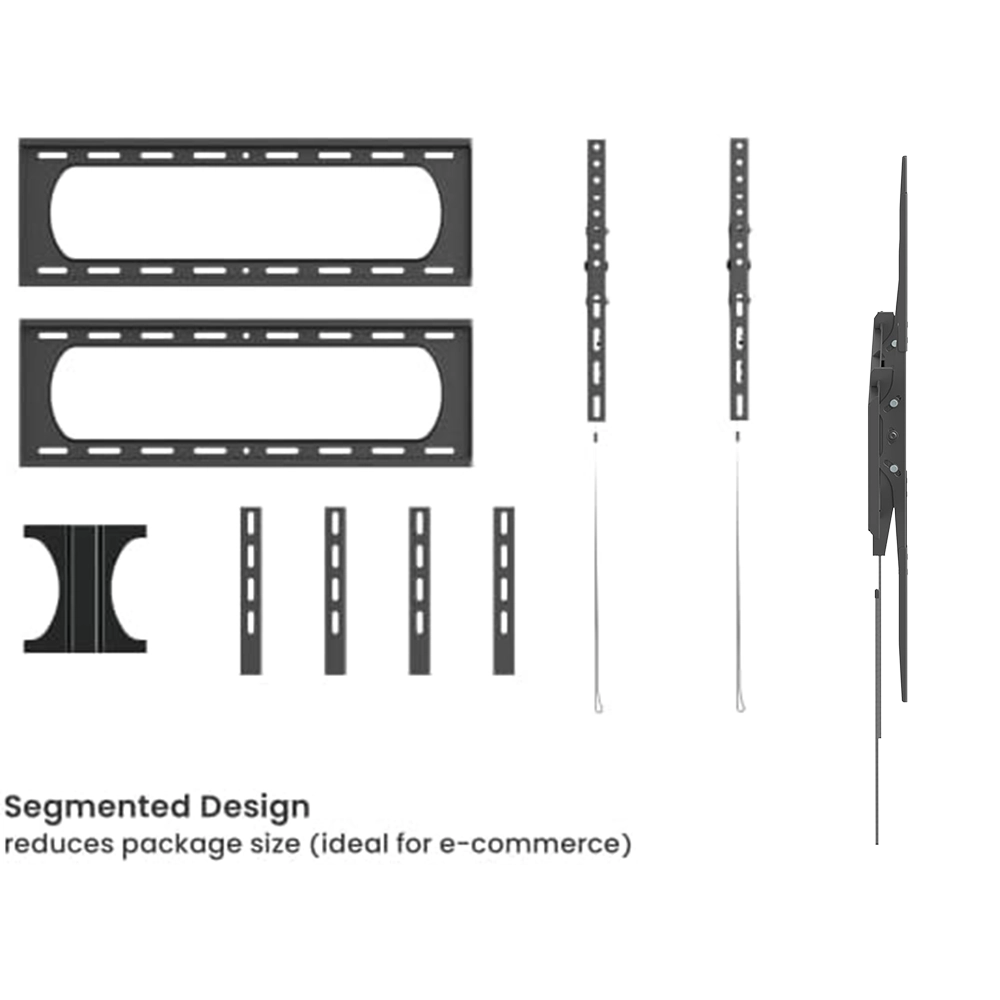 The slim 62 mm profile keeps your TV close to the wall, while the tilt adjustment allows comfortable viewing and reduces glare. Compatible with VESA patterns up to 1200×800 mm, this wall bracket delivers strength, stability, and peace of mind for any large-format display.