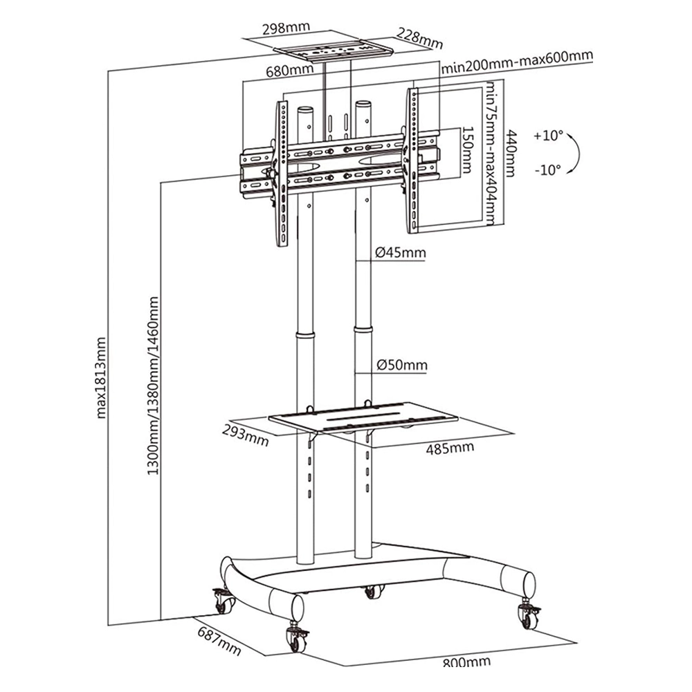 The Newstar T1037M Mobile TV Cart is a professional-grade rolling stand designed to support TVs from 37″ to 70″with a weight capacity of 50kg (110 lbs). Perfect for offices, schools, conference rooms, trade shows, and home use, this TV trolley combines strength, mobility, and convenience.