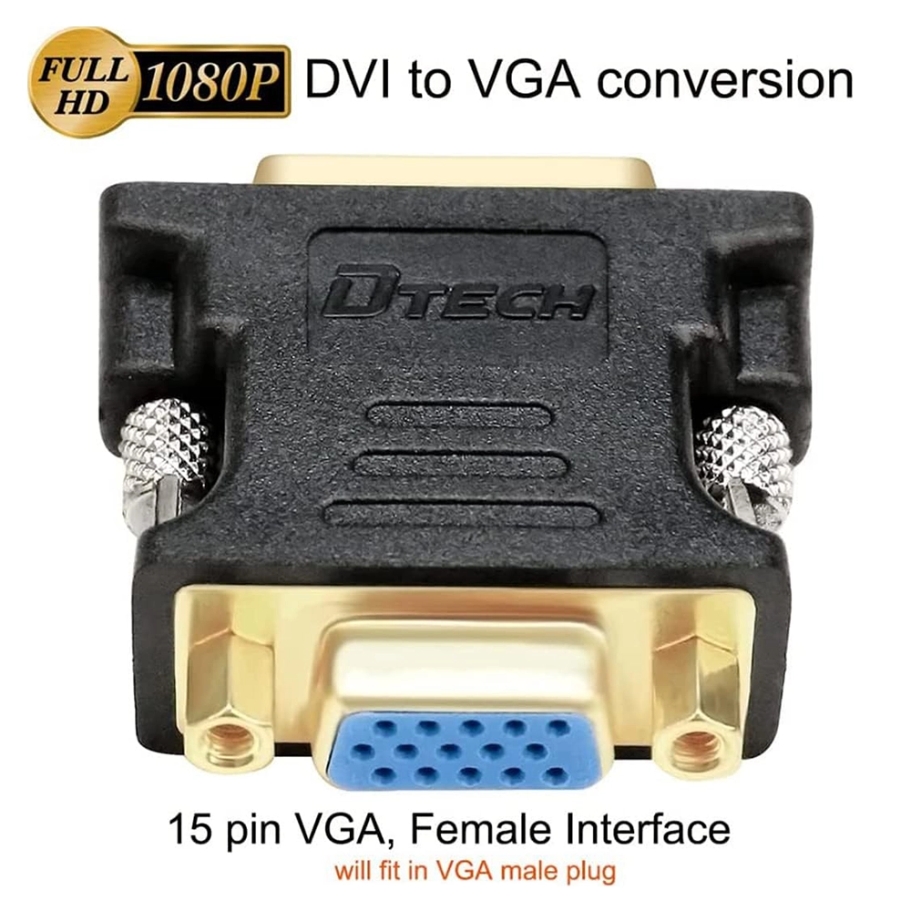 The DTECH DVI-D Male to VGA Female Adapter is a reliable one-way video conversion solution designed to connect devices with a digital DVI-D output to displays with an analogue VGA input. This adapter converts digital DVI input to analogue VGA output and is not bi-directional, making it ideal for connecting computers, laptops, or graphics cards to VGA-equipped monitors or projectors.