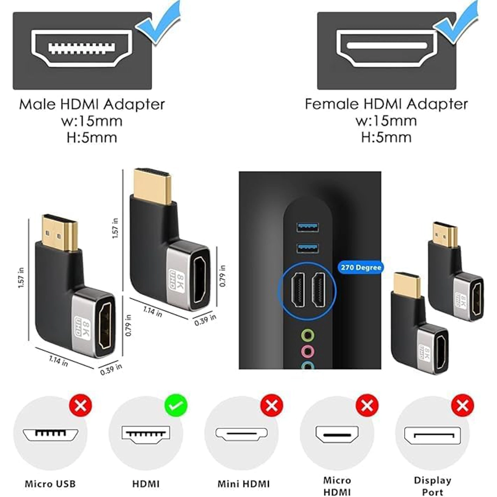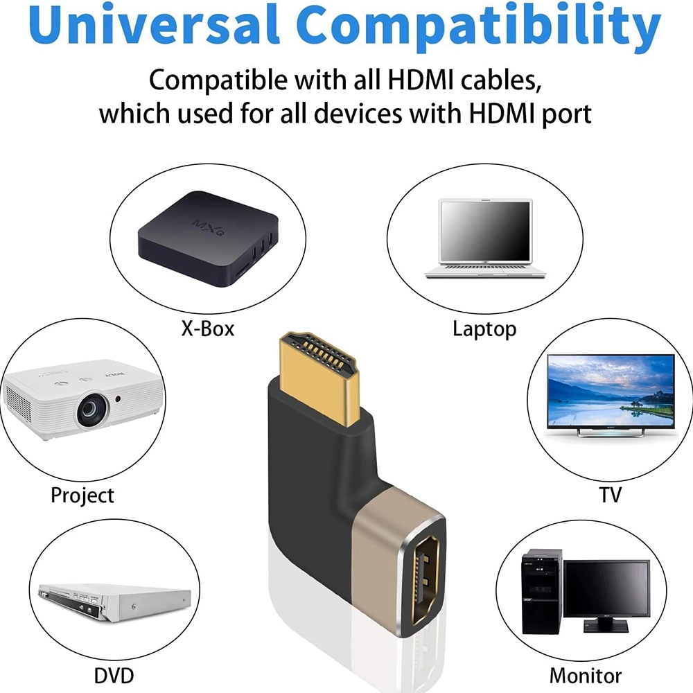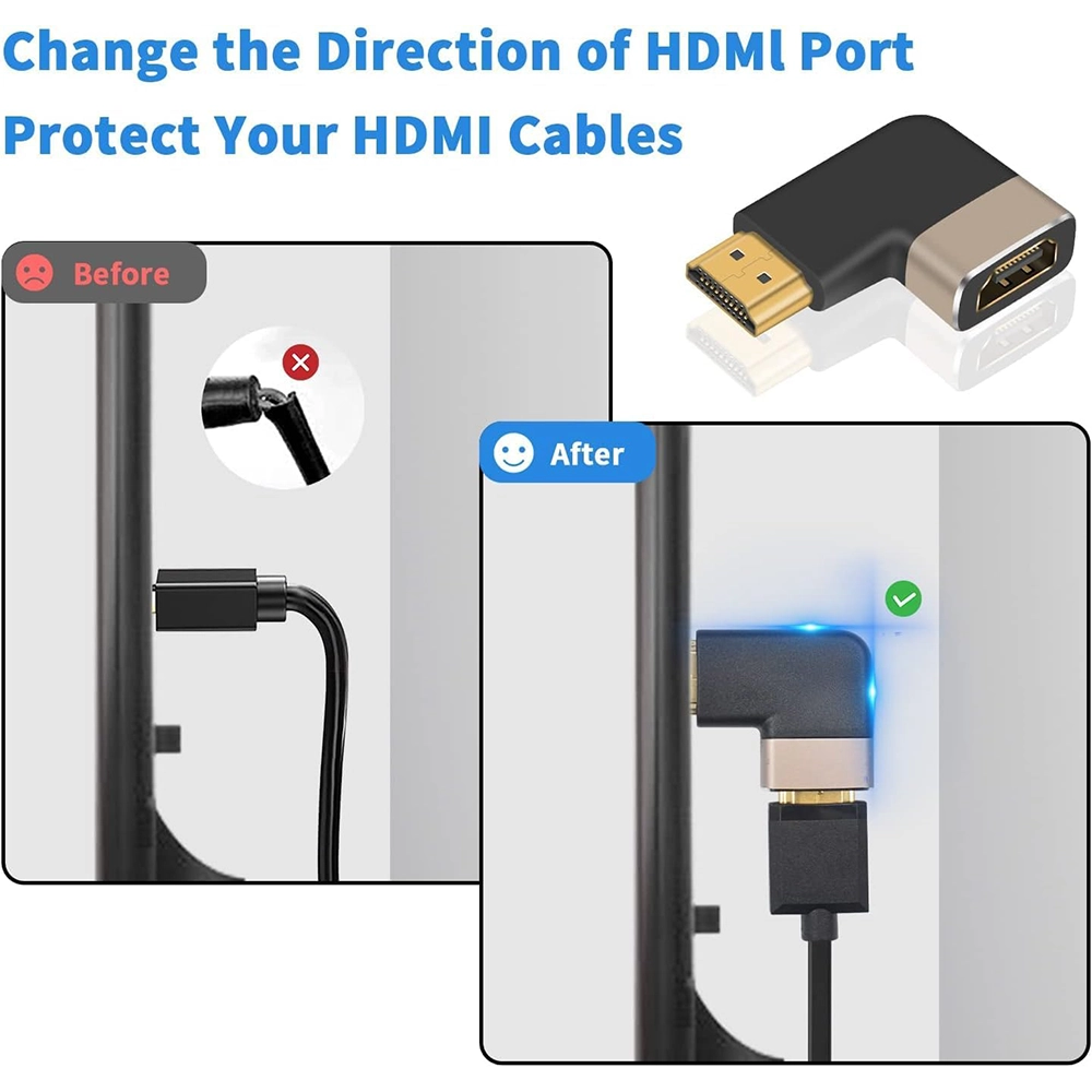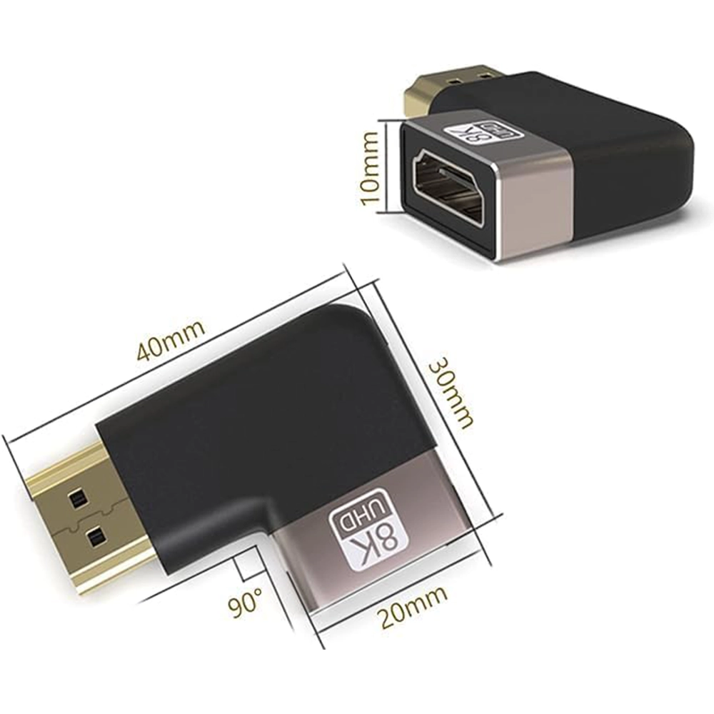 The 8K 90-Degree HDMI Left-Angle Adapter is designed to provide a practical and space-saving solution for HDMI connections in tight or confined areas. With its right-angle (90°) design, this adapter reduces cable strain and prevents excessive bending behind TVs, monitors, wall-mounted displays and equipment racks — helping to extend cable life and improve installation neatness.