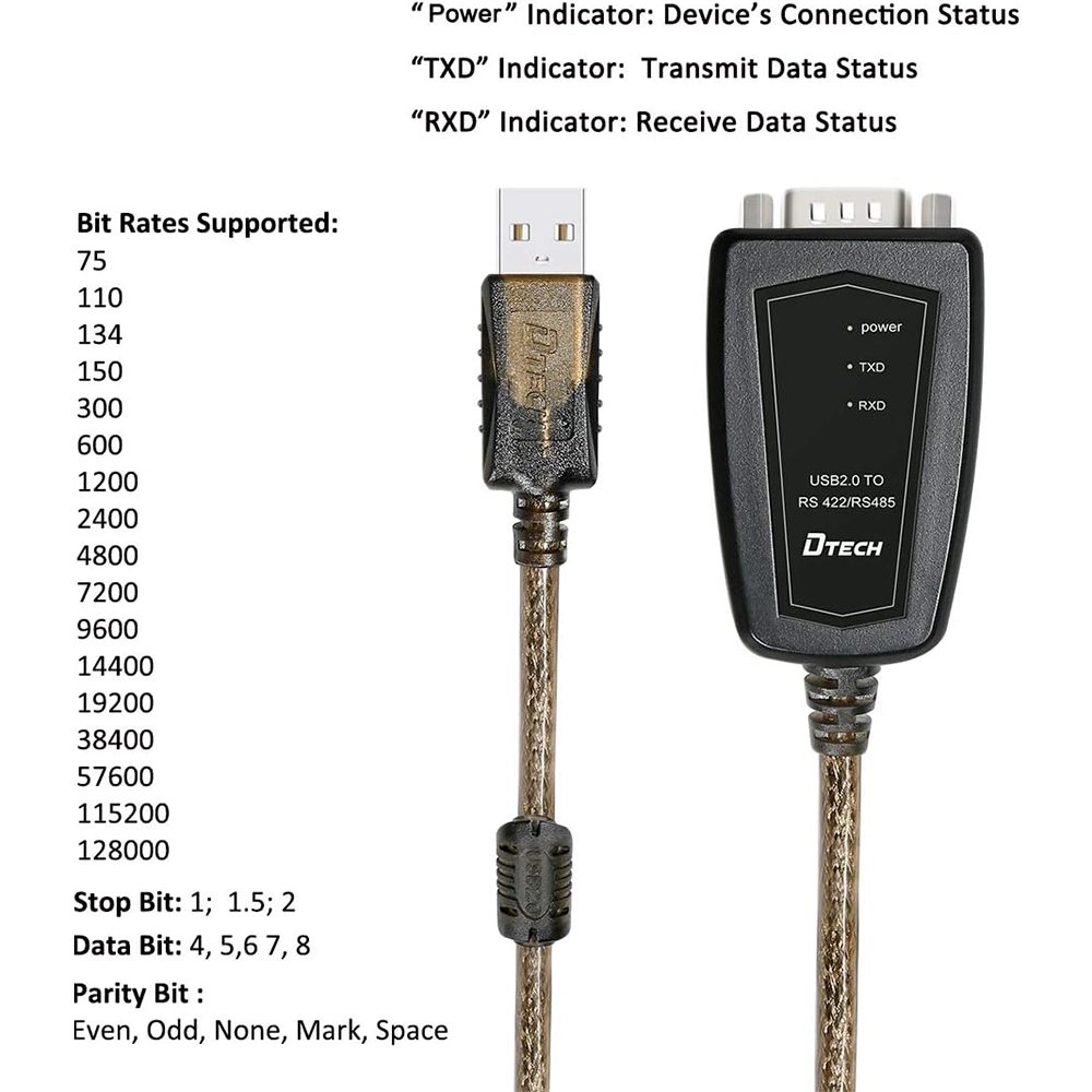 The DTECH USB to RS485 / RS422 Serial Adapter Cable is a professional-grade industrial communication converter designed to connect RS485 or RS422 serial devices directly to a computer via a USB port.